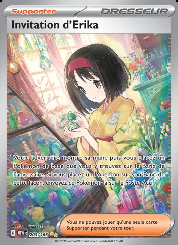 Votre adversaire montre sa main, puis vous placez un Pokémon de base que vous y trouvez sur le Banc de l'adversaire. Si vous placez un Pokémon sur son Banc de cette façon, envoyez ce Pokémon-là sur le Poste Actif.