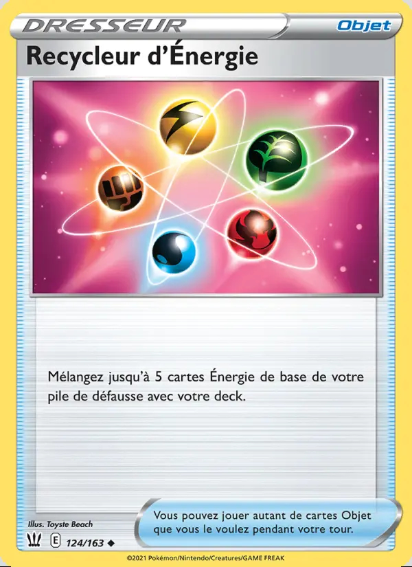 Mélangez jusqu'à 5 cartes Énergie de base de votre pile de défausse avec votre deck.