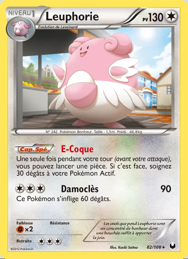 Talent: Une seule fois pendant votre tour (avant votre attaque), vous pouvez lancer une pièce. Si c’est face, soignez 30 dégâts à votre Pokémon Actif.